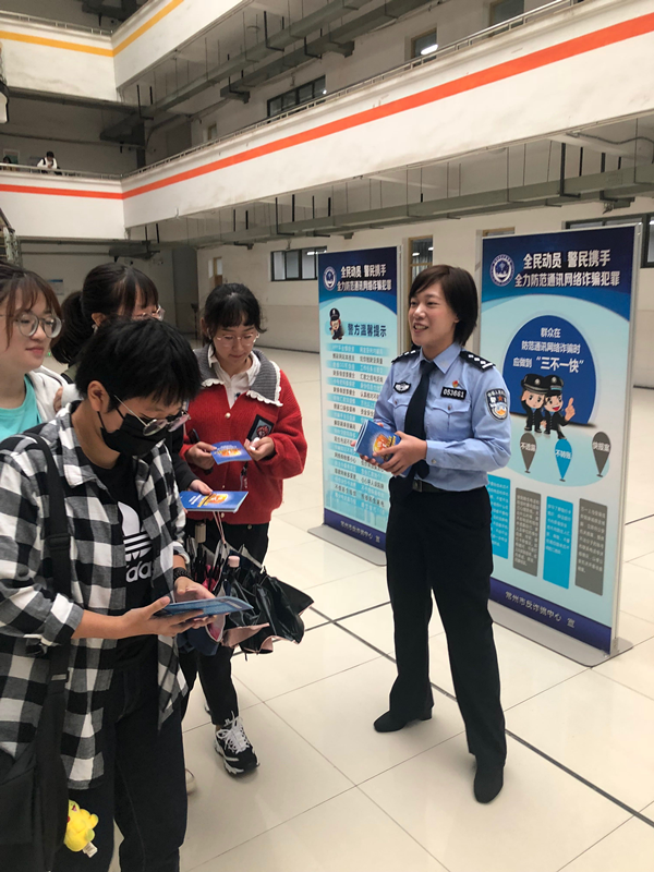 2020年10月16日,我院組織20級新生開展安全教育,院副院長周永生、安全員周永南為全體新生進行實驗室安全教育,常州市防詐騙中心警官張之林、秦瑤,科教城派出所民警戴立鋆、何之源為全體新手進行防詐騙安全教育。