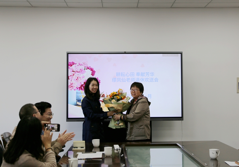 歡送會上, 繆老師抒發(fā)了自己的退休感言,感謝學(xué)院領(lǐng)導(dǎo)的重視和關(guān)懷,也感謝同事們的陪伴和幫助;陳院長和吳書記對繆鳳仙老師為我院的建設(shè)與發(fā)展所付出的辛勤勞動和貢獻(xiàn)表示衷心的感謝,對她光榮退休表示衷心祝賀,希望一如既往的關(guān)心與支持我院的發(fā)展,多提寶貴建議。會上向繆老師贈送了鮮花,大家一起暢談回憶共事的點(diǎn)滴時光,歡送會在一片溫情祥和中圓滿結(jié)束。