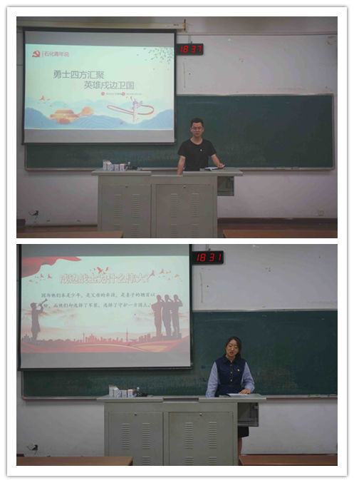 為弘揚愛國民族精神、致敬戍邊英雄,謳歌偉大的中國共產(chǎn)黨,6月21日晚6:30,我院于w1202教室開展以“勇士四方匯聚,英雄戍邊衛(wèi)國”為主題的石化青年說。本次宣講由團委副書記王博智主持,應化201班王姣杰、應化202班石智鋒主講,各班級代表參加。