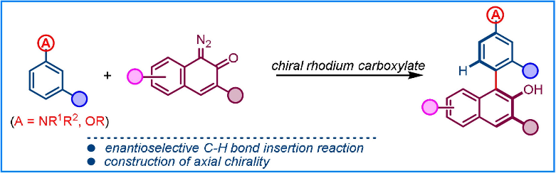 近期,孫江濤教授課題組在Angew. Chem. Int. Ed. 上發(fā)表了“Construction of C?C Axial Chirality via Asymmetric Carbene Insertion into Arene C?H Bonds”的通論論文,并被選為Hot Paper (熱點(diǎn)論文)。論文的第一作者為本組研究生李自永同學(xué)。