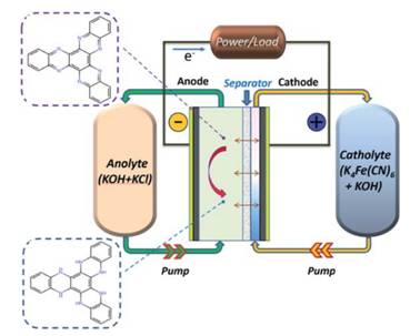 High-capacity hexaazatrinaphthylene anode for aqueous organic hybrid flow battery battery