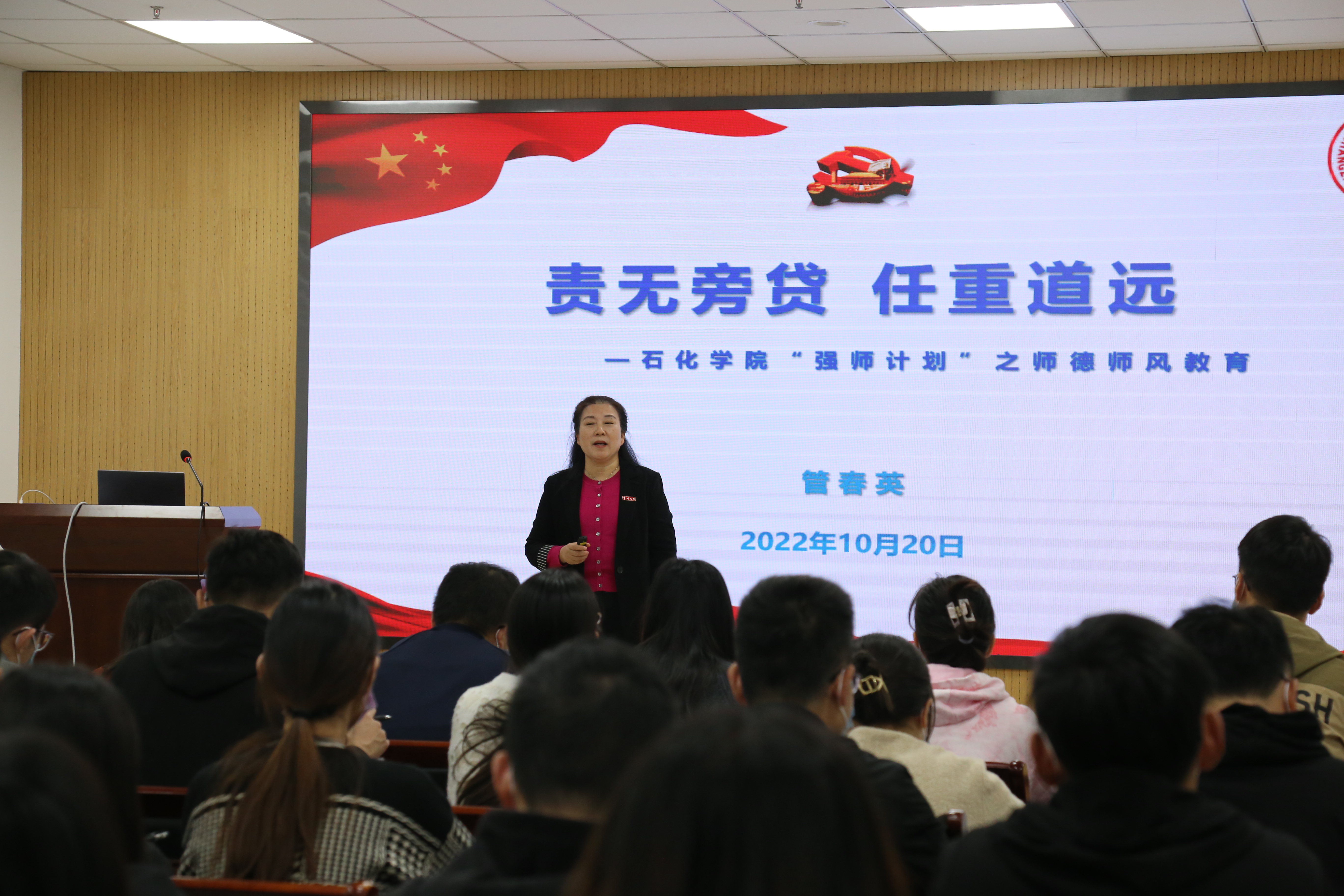 為提高青年教師隊(duì)伍整體素質(zhì)和業(yè)務(wù)水平,10月20日下午,學(xué)院在測(cè)試樓B109室開(kāi)展師德師風(fēng)專題培訓(xùn),我院黨委書記管春英以“責(zé)無(wú)旁貸,任重道遠(yuǎn)”為主題開(kāi)展了專題講座,學(xué)院青年教師50余人參加此次活動(dòng)。