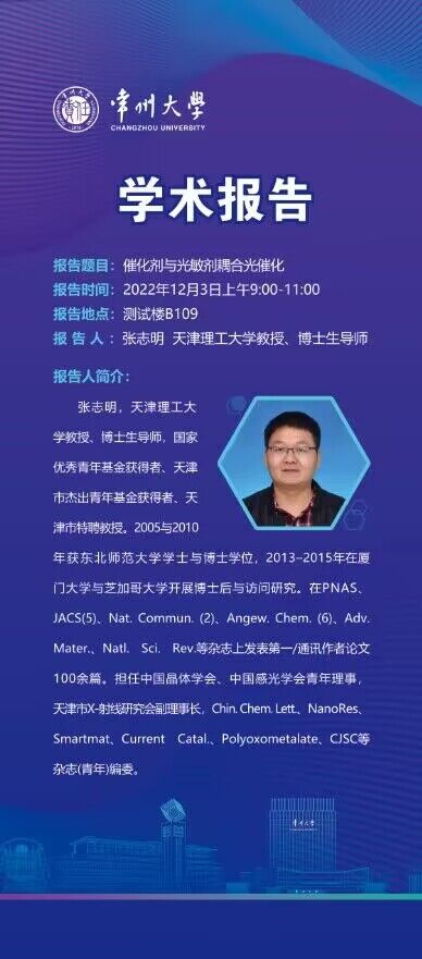 【學(xué)術(shù)報(bào)告】12月3日學(xué)術(shù)報(bào)告——張志明教授——天津理工大學(xué)