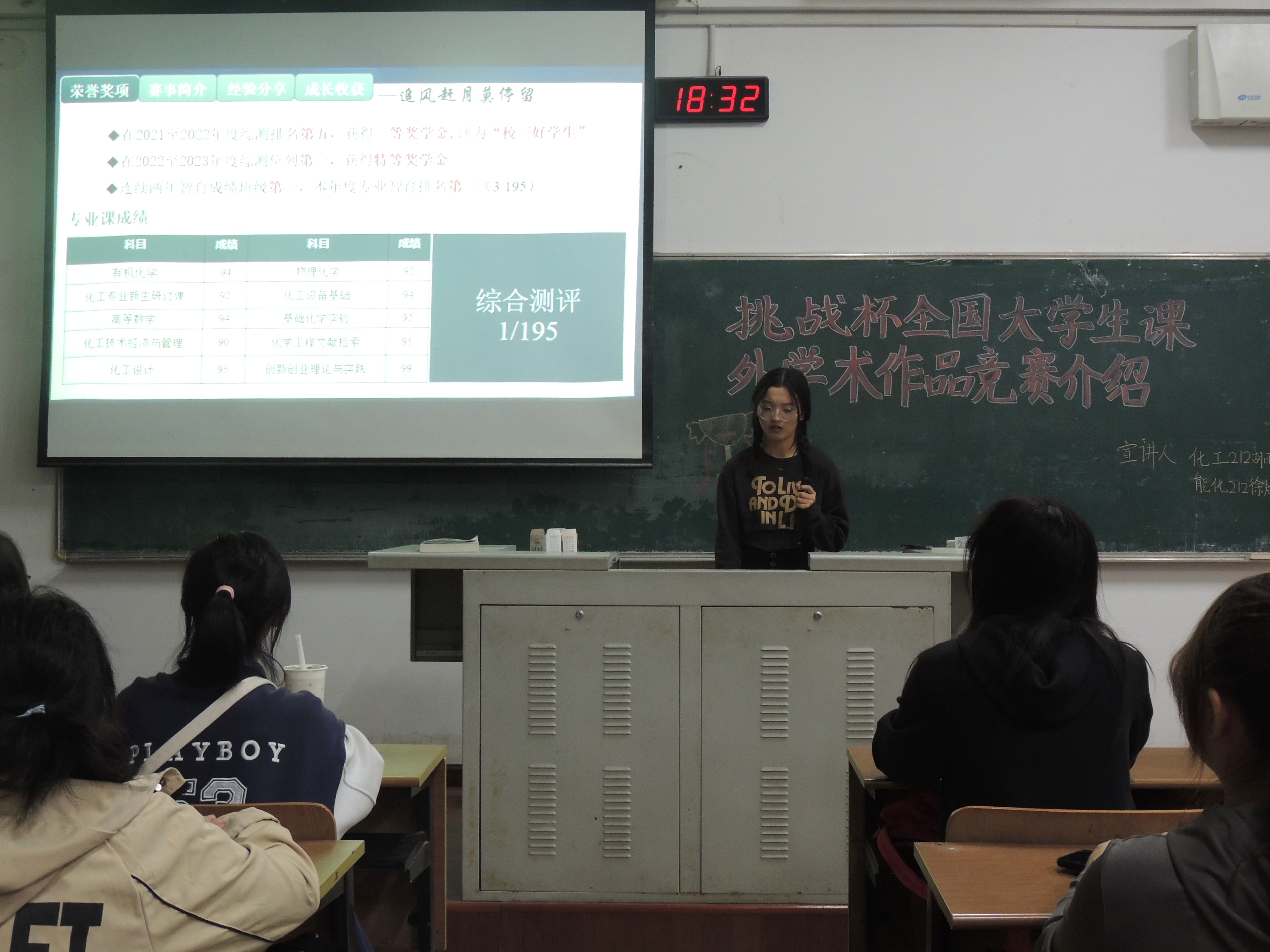 為鼓勵(lì)我院學(xué)生積極參與創(chuàng)新創(chuàng)業(yè)競(jìng)賽,加強(qiáng)創(chuàng)新本領(lǐng)、提高學(xué)術(shù)水平和能力,我院于近日在W1210舉辦“石化青年說(shuō)”系列講座——“挑戰(zhàn)杯”獲獎(jiǎng)?wù)呓?jīng)驗(yàn)分享。本次講座由我院“挑戰(zhàn)杯”獲獎(jiǎng)?wù)呋?12班胡雨萌、能化212班徐燁主講,各年級(jí)學(xué)生代表參加。