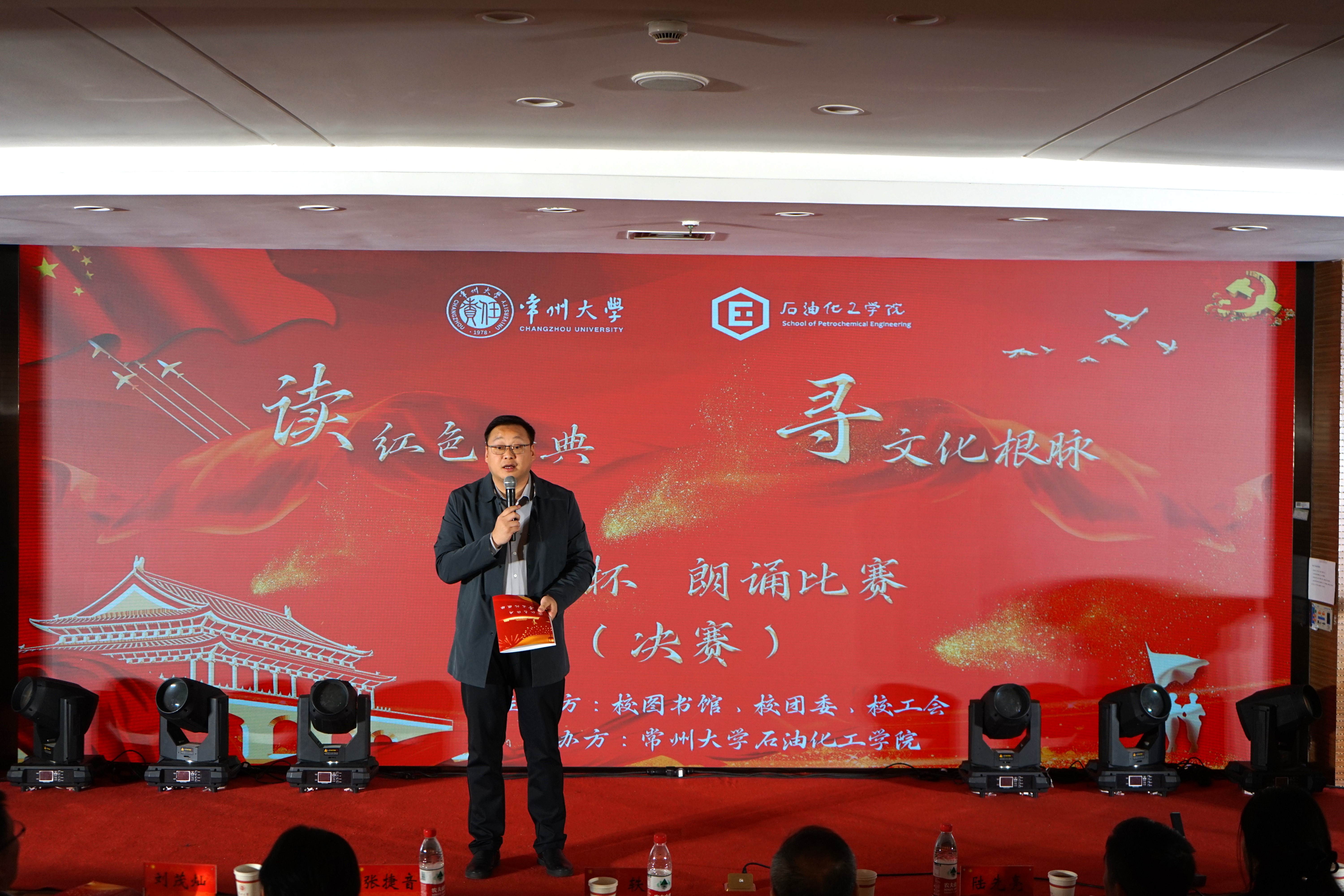 本次朗誦大賽是常州大學(xué)第十三屆讀書(shū)月系列活動(dòng)之一,以“讀紅色經(jīng)典,尋文化根脈”為主題,重溫往日崢嶸歲月,頌揚(yáng)紅色贊歌。常州大學(xué)直屬單位書(shū)記姚致遠(yuǎn)、團(tuán)委書(shū)記田軼、學(xué)生處副處長(zhǎng)陸先亮、工會(huì)副主席張捷音、吳敬璉經(jīng)濟(jì)學(xué)院副書(shū)記王彩芳、石油化工學(xué)院副書(shū)記劉茂燦、圖書(shū)館閱讀推廣部主任孫艷紅出席本次大賽。