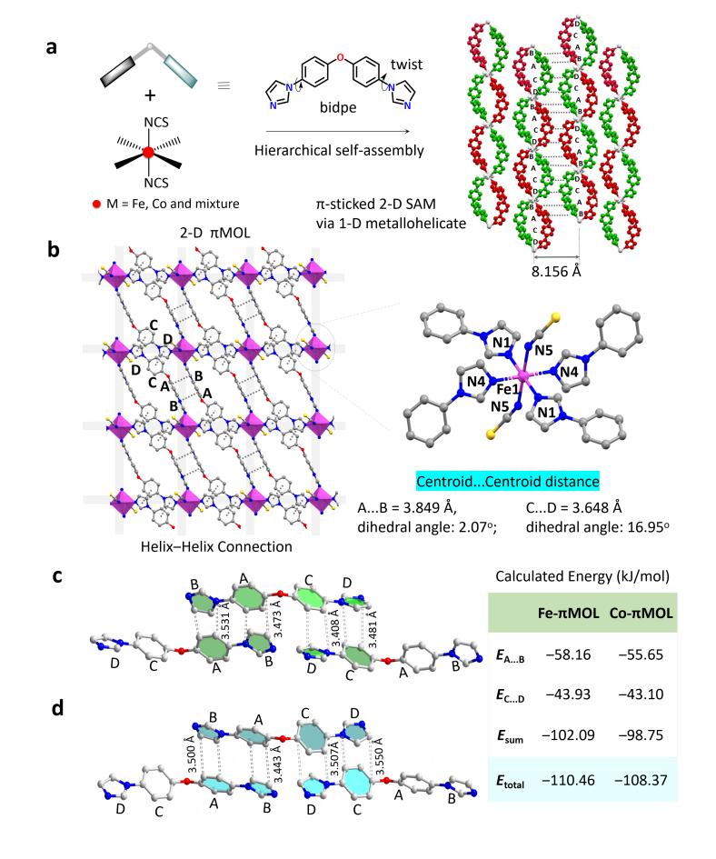 由于原子利用率的提高和結(jié)構(gòu)明確的電子轉(zhuǎn)移過(guò)程,用于構(gòu)建先進(jìn)催化材料的二維金屬有機(jī)層(MOL)的層級(jí)自組裝引起了人們的極大興趣。然而,通過(guò)層級(jí)自組裝過(guò)程構(gòu)建具有單層/少層厚度的原子級(jí)精確的光催化材料,仍然是一個(gè)重要挑戰(zhàn),主要是因?yàn)閭鹘y(tǒng)的非共價(jià)相互作用難以控制復(fù)雜的長(zhǎng)程有序過(guò)程。近日,常州大學(xué)石油化工學(xué)院吳大雨教授團(tuán)隊(duì),成功構(gòu)建了自組裝單層π粘附二維框架材料(Fe/Co/FeCo-πMOL),作為高效的原子級(jí)催化劑,以期實(shí)現(xiàn)碳資源的高效利用和溫室氣體的轉(zhuǎn)化。相關(guān)研究工作以題為“π-Sticked Metal?Organic Monolayersfor Single-Metal-Site Dependent CO2 Photoreduction and Hydrogen Evolution Reaction”發(fā)表在材料科學(xué)領(lǐng)域頂級(jí)期刊Small(DOI: 10.1002/smll.202309194)。