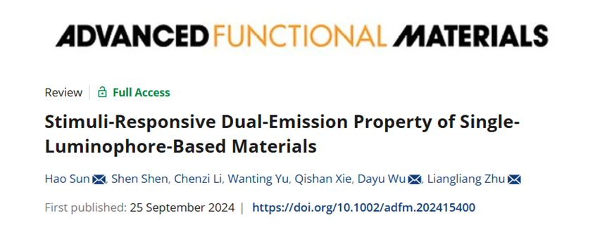 近日,吳大雨教授團隊在國際頂級期刊《Advanced Functional Materials》上發(fā)表了題為“Stimuli-Responsive Dual-Emission Property of Single-Luminophore-Based Materials”的綜述論文,第一作者為團隊青年教師孫浩博士,該項工作從單發(fā)光團刺激響應光學材料的作用機理、調控方法和應用等方面系統(tǒng)綜述了該類智能材料的研究進展。