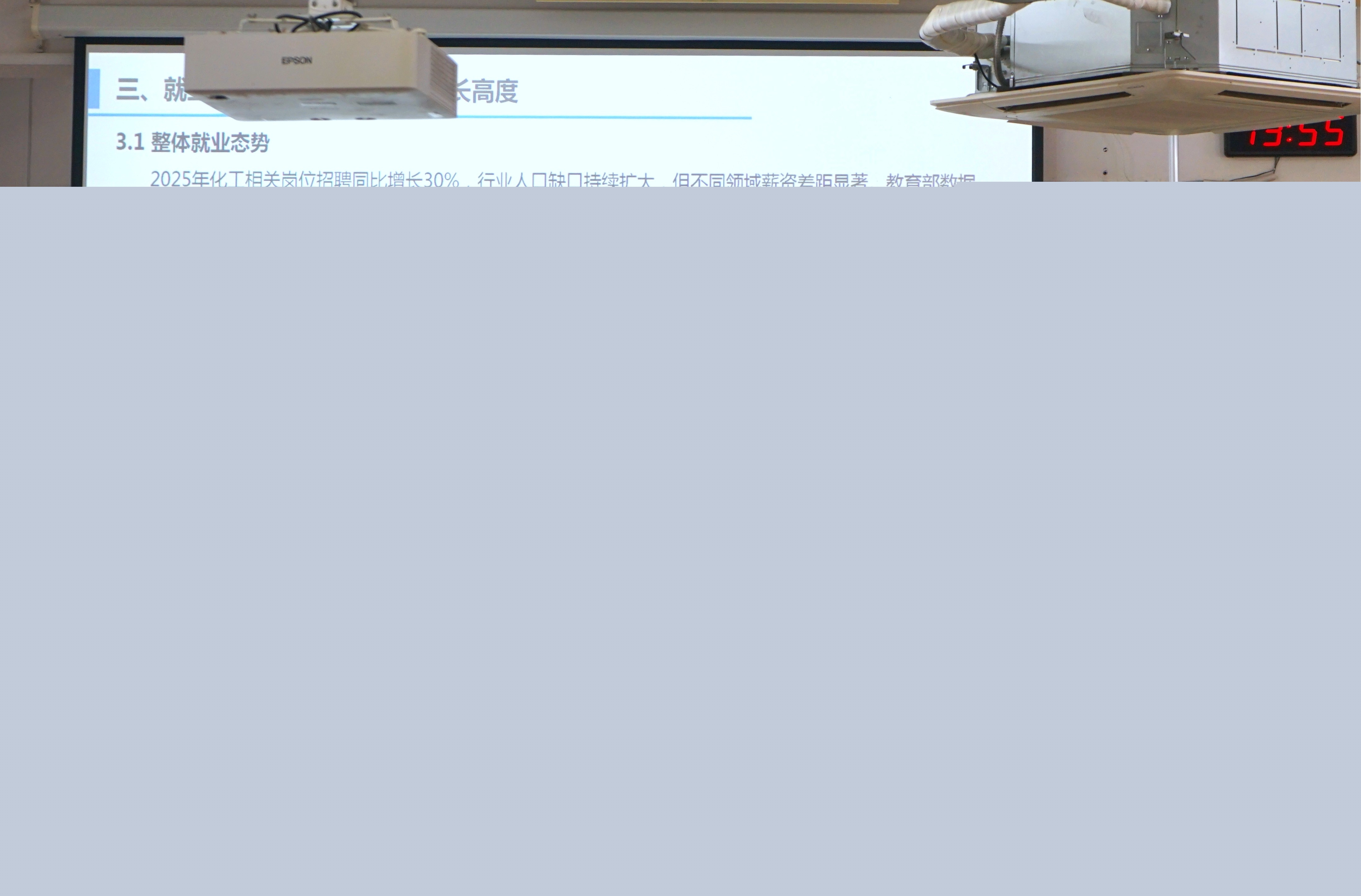 本次講座圍繞石化企業(yè)的招聘要求、行業(yè)發(fā)展現(xiàn)狀、職業(yè)發(fā)展建議等方面展開。三位校友首先為同學們解析了當前石化行業(yè)的招聘趨勢、招聘流程和具體要求,并結合他們所在企業(yè)和相關領域的詳實產(chǎn)業(yè)數(shù)據(jù),深入剖析了化工相關產(chǎn)業(yè)的發(fā)展現(xiàn)狀。此外,校友們結合他們的求學和工作經(jīng)歷,給學弟學妹們分析了化工相關專業(yè)的就業(yè)現(xiàn)狀和職業(yè)發(fā)展前景,幫助同學們厘清發(fā)展路徑、做好職業(yè)規(guī)劃。最后,他們寄語學弟學妹們要筑牢專業(yè)知識基礎,務必學好專業(yè)課程;要拓展視野,鼓勵大家積極參與科研項目、學科競賽和社會實踐,提升解決復雜問題的綜合能力;還要錘煉品格,培養(yǎng)吃苦耐勞、勇于擔當?shù)穆殬I(yè)精神,并保持終身學習的習慣,以應對行業(yè)的快速變革。他們的寄語情真意切,引發(fā)了在場同學的深深共鳴。