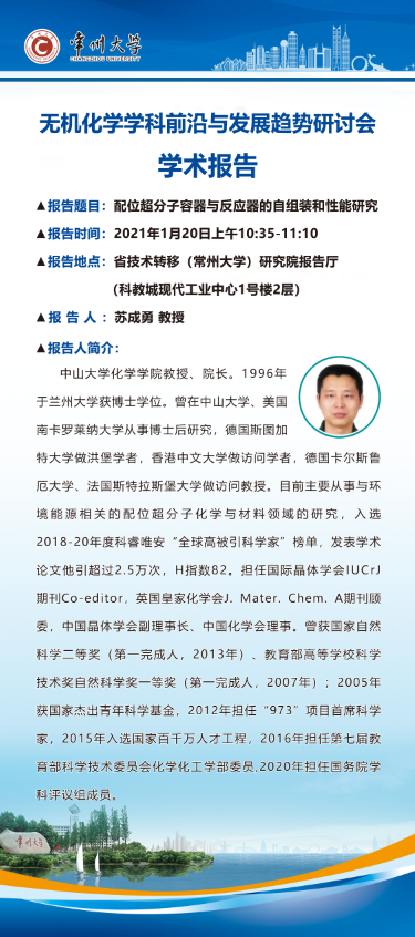 | 【學(xué)術(shù)報告】1月20日無機化學(xué)學(xué)科前沿與發(fā)展趨勢研討會學(xué)術(shù)報告 |