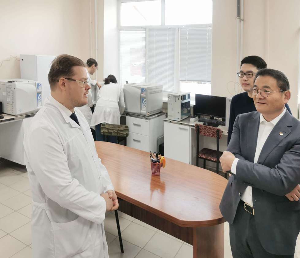 訪問烏法科技大學(xué)期間,我校代表團會見了分管科研創(chuàng)新事務(wù)副校長格奧爾吉·阿格耶夫、分管教育與發(fā)展副校長尤利婭·羅漢諾娃、分管國際事務(wù)副校長麗塔·菲麗波娃,格奧爾吉紹了烏法科技大學(xué)的發(fā)展情況,并表示希望與常州大學(xué)繼續(xù)深入合作。會談中,雙方就強化兩校材料科學(xué)碩士雙學(xué)位聯(lián)合培養(yǎng)機制,開拓兩校機械、化工、商科領(lǐng)域的學(xué)生聯(lián)合培養(yǎng)項目進行交流,對兩校開展中外合作辦學(xué)項目事宜達成合作共識,并續(xù)簽了功能納米結(jié)構(gòu)材料(中俄)聯(lián)合實驗室的合作協(xié)議。會后,代表團參觀了化工學(xué)院實驗室,就兩校共建化工新材料聯(lián)合實驗室、聯(lián)合開展科研項目事宜進行了深入交流并達成了合作共識。(通訊員/王建輝審核/魏偉編輯/孫悅)