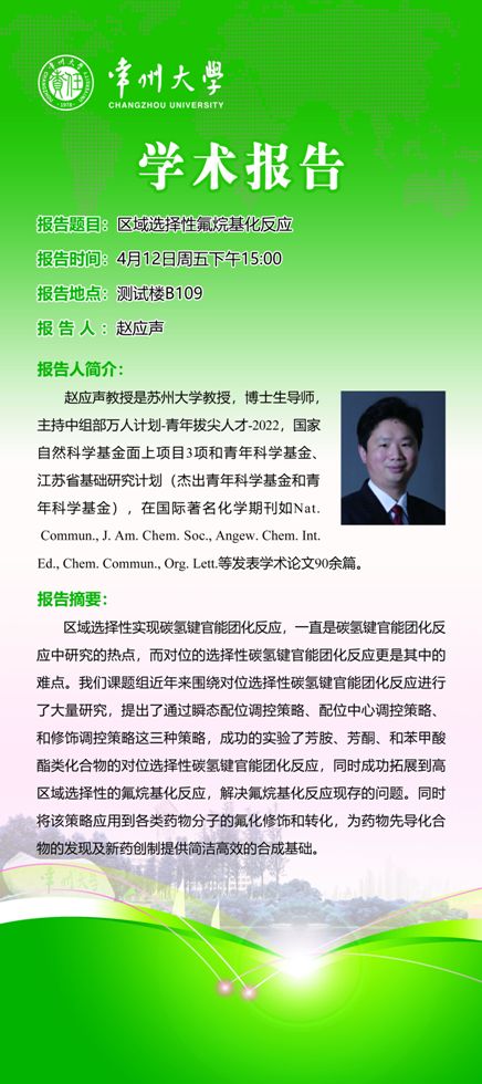 【學術(shù)報告】4月12日學術(shù)報告-趙應聲教授-蘇州大學