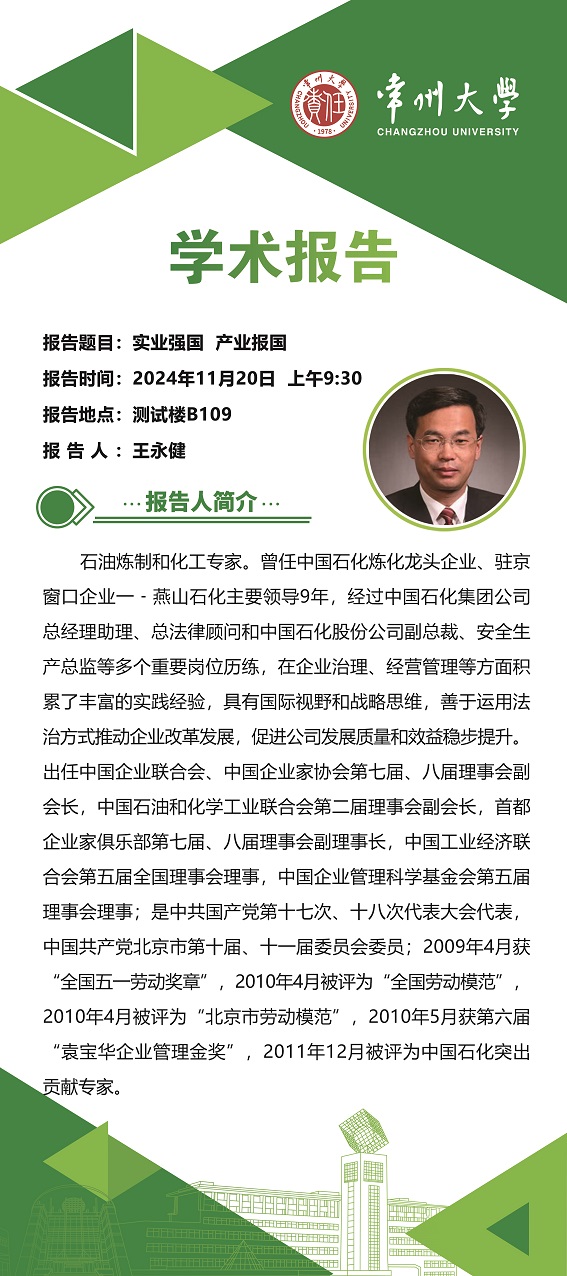 | 【學(xué)術(shù)報(bào)告】11月20日學(xué)術(shù)報(bào)告—王永健 研究員級(jí)高工 燕山石化 |