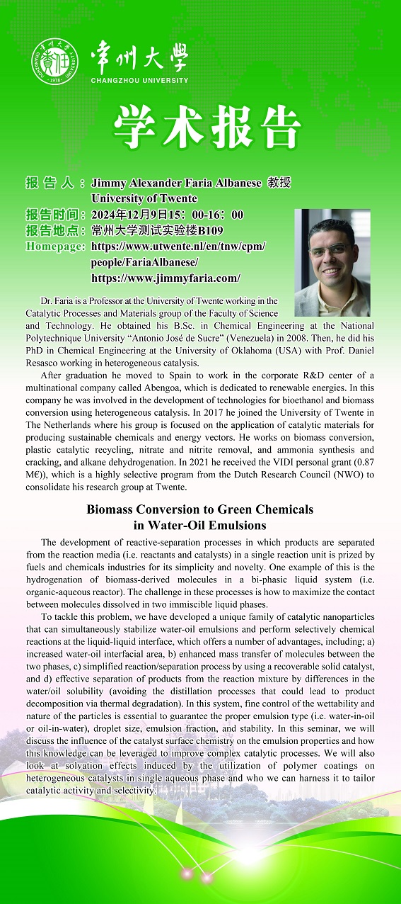 | 【學術(shù)報告】12月9日學術(shù)報告—Leon Lefferts教授、 Jimmy Alexander Faria Albanese教授 University of Twente |