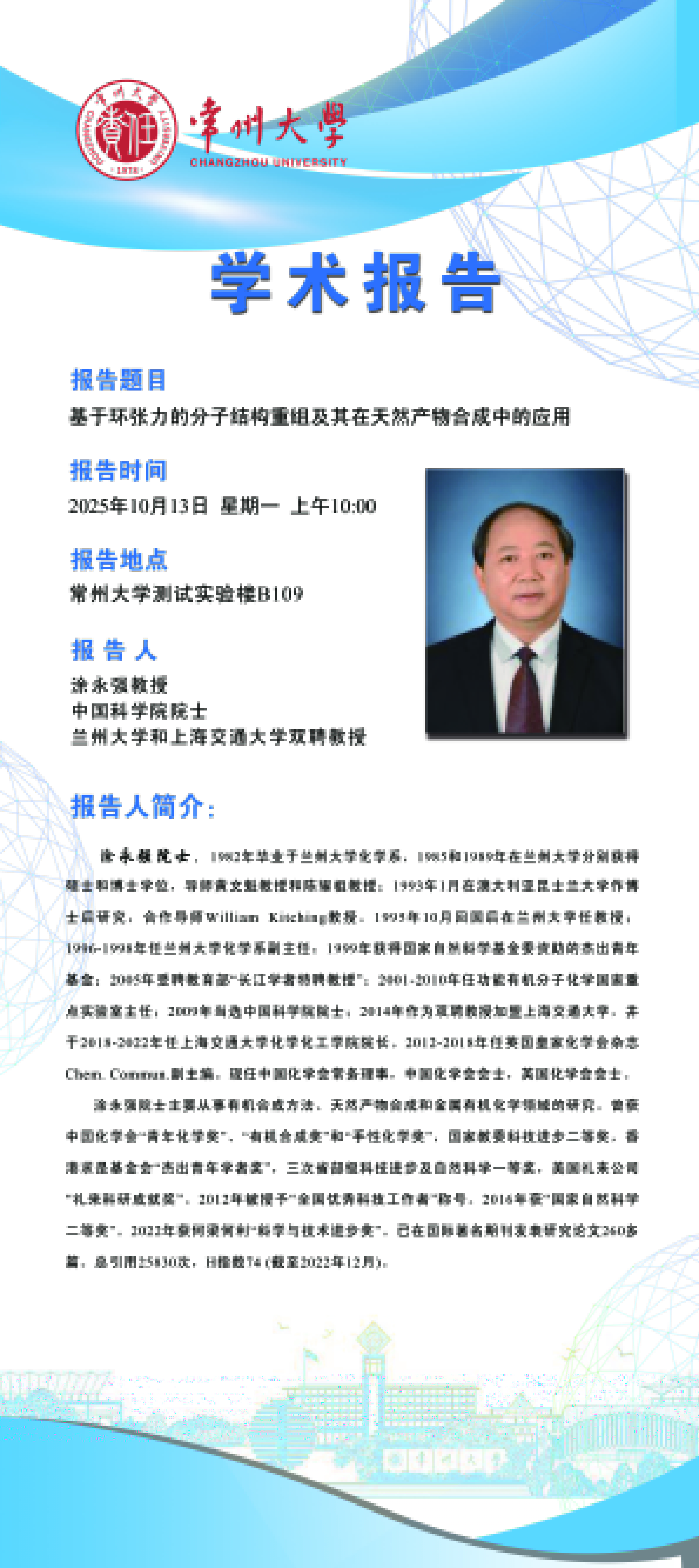 【學術報告】10月13日基于環(huán)張力的分子結構重組及其在天然產物合成中的應用