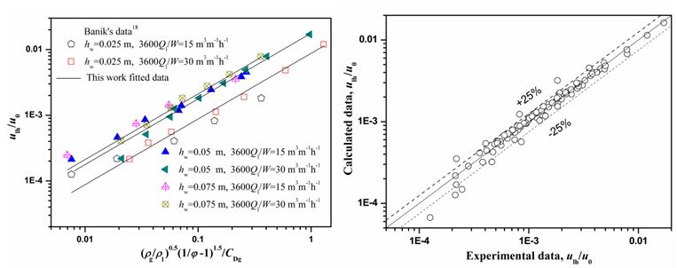 ,模型計(jì)算結(jié)果得到了實(shí)驗(yàn)數(shù)據(jù)的驗(yàn)證。模型顯示:非理想流動系數(shù)(前期工作定義)是影響泄漏速率的關(guān)鍵。 過程強(qiáng)化是實(shí)現(xiàn)化工節(jié)能、減排的重要途徑。對于蒸餾過程而言,深入理解大型塔設(shè)備中多相流的流體力學(xué)行為和傳質(zhì)行為是實(shí)現(xiàn)科學(xué)強(qiáng)化的基礎(chǔ)。王俊博士在前期研究工作中認(rèn)為氣相偏流是造成大型塔設(shè)備分離效率顯著降低的關(guān)鍵,并給出/導(dǎo)出了偏流機(jī)理和理論模型(Wang Jun, et al. AIChE J, 2015, 61: 1032–1042.);該模型被成功應(yīng)用到板式塔設(shè)備傳質(zhì)特性參數(shù)——相界面積的預(yù)測中(Wang Jun. et al. AIChE J, 2016, 62: 905–915)。至今,王俊博士圍繞該領(lǐng)域氣相偏流模型研究在AIChE Journal期刊上已連續(xù)發(fā)表了3篇研究論文。系列研究成果證實(shí)了氣相偏流模型具有廣闊的應(yīng)用前景。